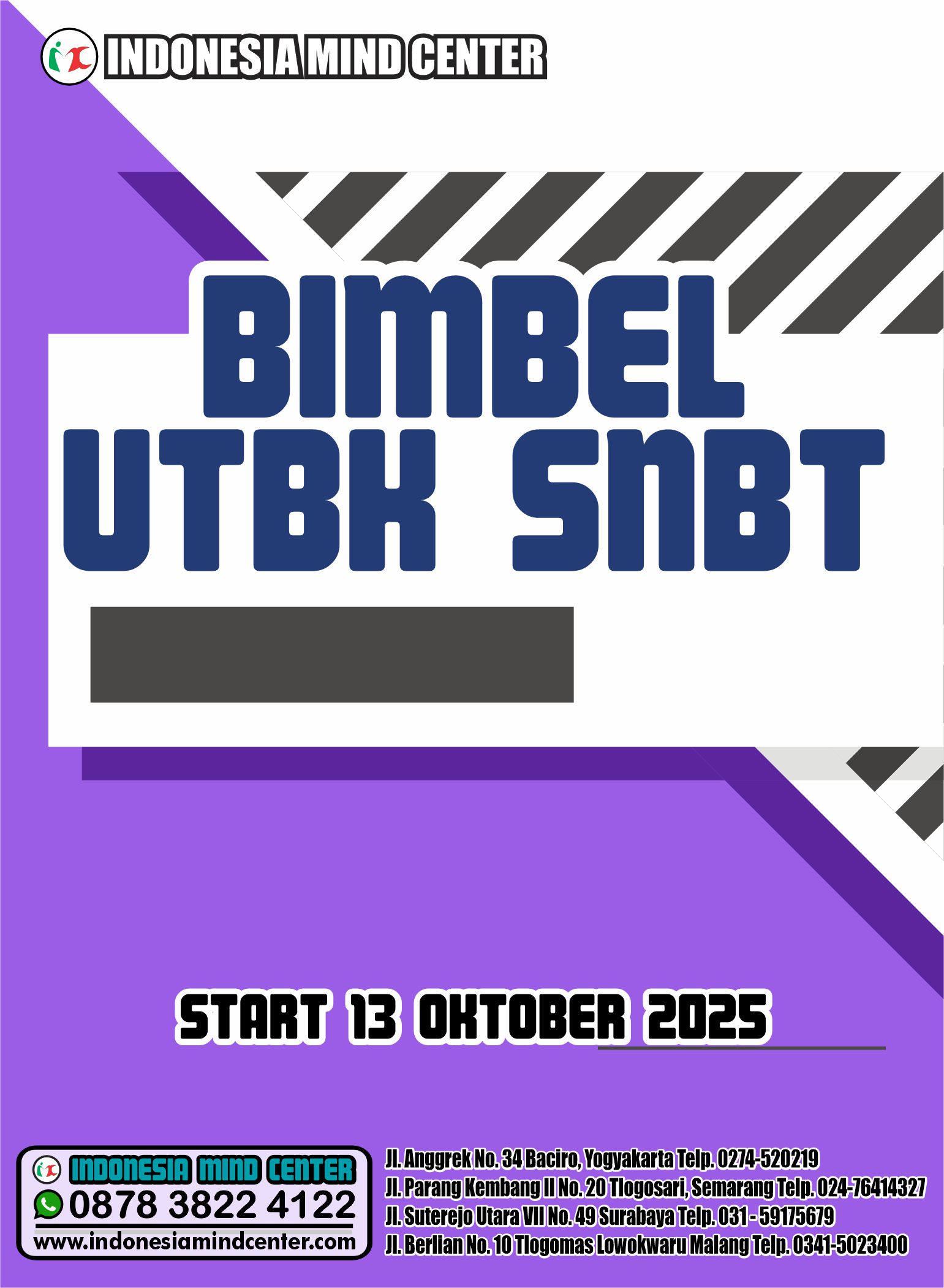 Jangan salah pilih bimbel, INDONESIA MIND CENTER masternya masuk PTN/KEDOKTERAN/ DAN KEDINASAN.